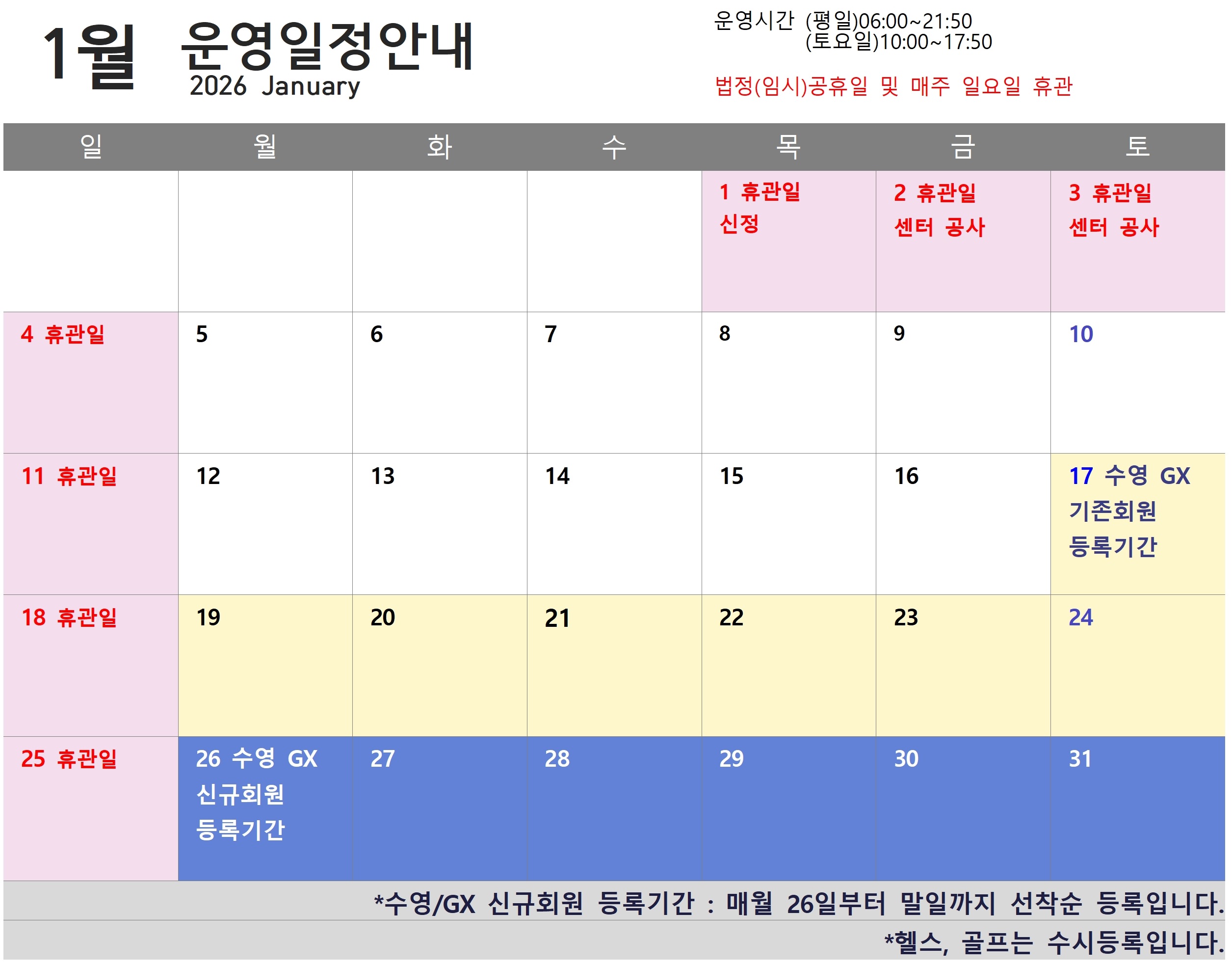 1월 운영일정안내